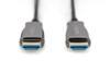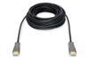 Bu aktif HDMI AOC hibrit fiber optik kablo, sıkıştırılmamış yüksek bant genişliğine sahip video ve audio verilerini daha uzun mesafelerde iletmek için idealdir. Bakır ve fiber optiklerden oluşan bu hibrit yapı, elektromanyetik etkileri ortadan kaldırarak tüm kablo uzunluğu boyunca 4K/60 Hz'ye kadar UHD çözünürlükleri ve 18 Gbps'ye kadar bant genişlikleri ile kayıpsız aktarım sağlar. Optik iletkenlerin (fiber optik) kullanılması sayesinde bu aktif kablonun çapı çok düşüktür ve çok küçük bükülme yarıçapıyla ve düşük ağırlığı ile öne çıkar. Evler, toplantı veya konferans salonları ve iç mekanlar, ideal kullanım uygulamalarından sadece birkaçıdır. Kullanıcı dostu kurulum sadece tak ve çalıştır gerektirir, takın ve hemen en yüksek görüntü kalitesinin keyfini çıkarın. HDMI 2.0b, HDCP 2.2 ve HDR gibi sayısız standardı destekler. Audio alanında ise ARC, DTS-HD Master Audio veya Dolby TrueHD gibi birçok özellik desteklenir. En yeni çip teknolojisini kullanarak tüm HDMI sinyal yelpazesini aktarabilir ve aynı zamanda çok düşük gecikme süresi ve sıkıştırılmamış CED, EDID'i destekler.