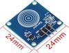 Bu modül TTP223B kapasitif dokunmatik entegresi ile hazırlanmıştır. Normal durumda modül çıkışı 0V dur. Parmak dokunması oluştuğunda modül çıkışı VCC seviyesine çıkar. 12 sn boyunca dokunma oluşmadıysa entegre düşük güç moduna geçerek beklemede kalır.