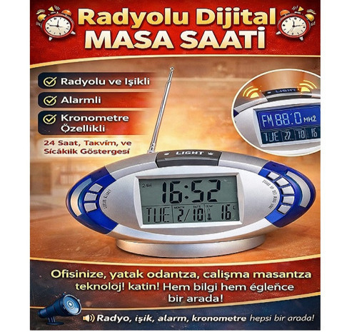 Dijital ışıklı radyolu masa saati ürün 4 ince AAA pil ile çalışır piller ürüne dahil değildir