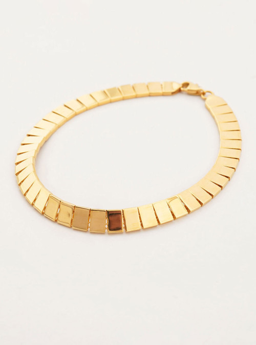 22 Ayar Altın Bileklik Dikdörtgen Baklalı, net hatlara sahip bakla formuyla bilekte düzenli ve güçlü bir duruş sunar. Dikdörtgen baklaların oluşturduğu ritmik yapı, tasarıma modern ve dengeli bir görünüm kazandırırken 22 ayar altının zengin ışıltısı her detayı öne çıkarır. Akıcı formu sayesinde bileğe rahatça uyum sağlayan bu bileklik, sade çizgiler içinde iddialı bir şıklık arayanlar için zamansız ve karakterli bir tercihtir.