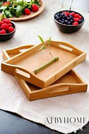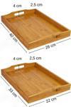 - Set içeriği : 2 adet bambu tepsi Ürün boyutu : >>> Büyük tepsi : 40 x 28 x4 cm >>> Küçük Tepsi : 33 x 22 x 4 cm Ürün materyali : %100 Bambu Yıkama Talimati : Elde su ve sabun ile yıkama yapılabilir.