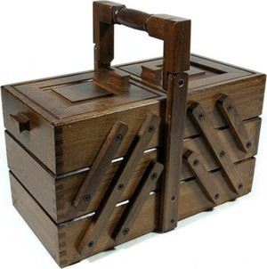Moonstar Dekoratif Ahşap Dikiş Ve Aksesuar Kutusu Büyük 3 Katlı 5 Gözlü