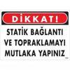 Dikkat Statik Bağlantı Ve Topraklamayı Mutlaka Yapınız Uyarı Levhası 25x35 KOD:1323