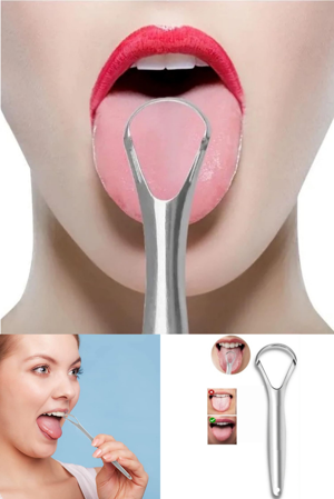 Omilife Paslanmaz Çelik Dil Plak Temizleyici Ağız Bakım Fırçası Dil Sıyırıcı Aparat