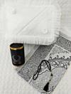 Dilex 4 Parça Çeyizlik Bohça Gelin Damat Hediye Kutulu Seccade Seti Lüks Tafta Seccade Beyaz Siyah SET İÇERİĞİ