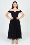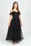 Üst kısmında yer alan dantel robası ve modern omuz kesimi ile göz alıcı bir duruş sergileyen model, sırt kısmındaki gipe lastik detayı sayesinde esnek bir yapıya sahiptir. Fermuar içermeyen bu tasarım, hem kolay giyilip çıkarılabilir hem de rahat bir kullanım sunar. Mezuniyet, doğum günü, bayram ve nişan gibi özel günler için idealdir.