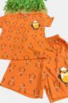 Göz alıcı baskılı deseni ile çocukların beğenisine sunulan bu pijama takımı, şıklığı ve eğlenceyi bir arada getirir
