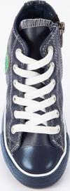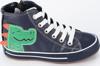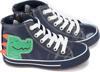 Yüksek konçlu, lacivert suni deri yüzeyli, bir yanı dinozor aplikeli, her kıyafetin altına uyan sneakers. Yanı fermuarlı, bağcıkları çözmeden de kolay giyilip çıkarılır.