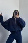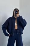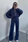 Kış ayları için ideal, şardonlu 3 iplik penye kumaştan üretilmiş hem rahat hem de şık bir görünüm sunar.; Düz tasarımıyla her türlü kombinle uyum sağlayan bu takım, günlük kullanıma uygun casual tarzıyla dikkat çeker.; Fermuar detaylarıyla modern bir dokunuş katılan sweatshirt ve pantolon, konforlu kullanım için tasarlanmıştır.; %70 pamuk ve %30 polyester karışımından oluşan materyali sayesinde dayanıklı ve nefes alabilen yapıya sahiptir.; Geniş paça pantolonu ve yarasa kol sweatshirtü ile rahat hareket etme özgürlüğünüz artar.; Yüksek bel pantolonu sayesinde gün boyu sabit kalırken, Bisiklet yaka sweatshirt, oversize kalıbı ve uzun kollu tasarımıyla rahatlık sağlar.; Rüzgara dayanıklı kumaş teknolojisiyle hava koşullarına karşı ekstra koruma sunar.; Fermuarlı kapama şekli kolay giyip çıkarmayı mümkün kılar ve tüm yaş gruplarına hitap eder.; Düz deseniyle sade ve zamansız bir stil oluşturmanızı sağlar.;