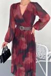 Ürün 36-42 bedene kadar uyumludur, Astarlı, piliseli, çiçek desenli, uzun kol, kemerli, midi boy