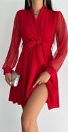 Tül detaylı kollar, kuşaklı.