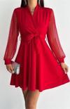 Ürün Adı: Dipmoda kadın bağalma detaylı tül detaylı kloş elbise KKLF33