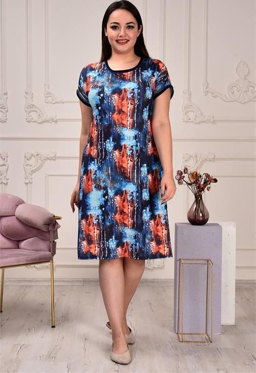 Dip Moda kadın bisiklet yaka desenli elbise AYSL81