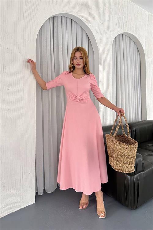 kadın bisiklet yaka midi boy likralı elbise DPK4154