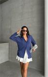 Ürün Adı: Dipmoda kadın çizgili oversize likralı gömlek DPNBG075
