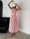 Ürün Adı: Dipmoda kadın gül broş detaylı uzun şifon elbise NBK2144