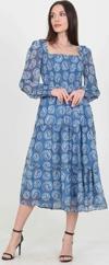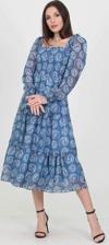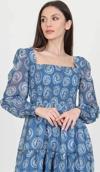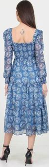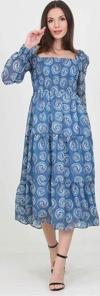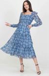 Ürün Adı: Dipmoda kadın indigo kare yaka gipeli eteği fırfırlı desenli şifon elbise NB100361