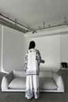 Ürün 36-42 bedene kadar uyumludur, salaş kesim, geniş ve rahat kalıp, desenli, uzun kol, yüksek bel pantolon, geniş paça, salaş kesim.
