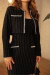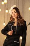 Ürün Adı: Dipmoda kadın kaşe çizgili kumaş ithal inci işlemeli elbise ve ceket takım NBEMP2607
