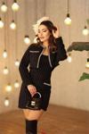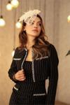 Ürün Adı: Dipmoda kadın kaşe çizgili kumaş ithal inci işlemeli elbise ve ceket takım NBEMP2607