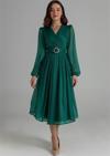 Ürün Adı:Dipmoda kadın kemerli kruvaze yaka simli gece elbisesi DPNBMY3590