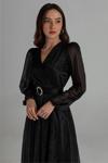 Ürün Adı:Dipmoda kadın kemerli kruvaze yaka simli gece elbisesi DPNBMY3590