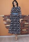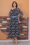 Ürün Adı: Dipmoda kadın kemerli yaka detaylı puantiyeli uzun şifon elbise RY0032