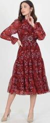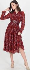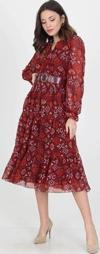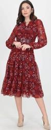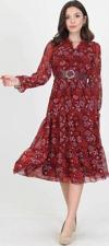Ürün Adı: Dipmoda kadın kemerli yakası bağlama detaylı desenli astarlı şifon elbise RSSN02