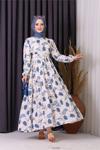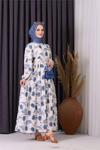 Ürün Adı: Dipmoda kadın keten desenli tesettür elbise SMS002 - Mavi