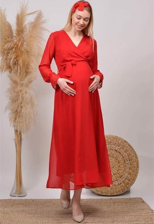 kadın kırmızı baby shower şifon hamile elbise HML003