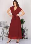 Ürün Adı: Neşeli Butik Kadın Kruvaze Yaka Bağlama Detaylı Yeni Sezon Uzun Şifon Elbise KTS001