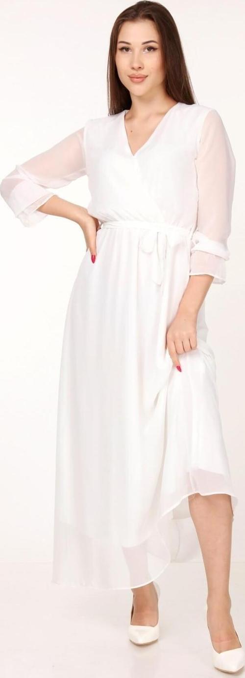 Ürün Adı: Neşeli Butik Kadın Kruvaze Yaka Bağlama Detaylı Yeni Sezon Uzun Şifon Elbise KTS003