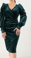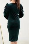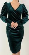 Ürün Adı: Dipmoda kadın kruvaze yaka büzgülü kadife elbise KKLF68 - Zümrüt