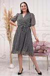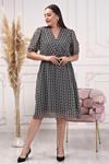 Ürün Adı: Dipmoda kadın kruvaze yaka midi boy büyük beden desenli şifon elbise NB80622