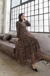 Ürün Adı: Dipmoda kadın kemerli leopar desenli tesettür şifon elbise SMS014