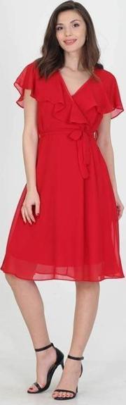 Ürün Adı: Dipmoda kadın yeni sezon kruvaze yaka melek kol şifon elbise RY8081