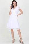 kadın midi boy yeni sezon kruvaze yaka melek kol şifon elbise RY8081