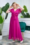 Ürün Adı: Neşeli Butik Kadın Yeni Sezon Kruvaze Yaka Bağlama Detaylı Uzun Şifon Elbise NB0001