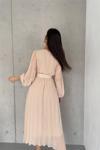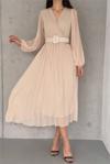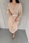 Ürün Adı: Dipmoda kadın piliseli kruvaze yaka kemerli şifon elbise NBK2113