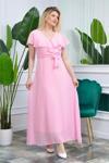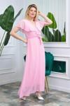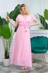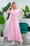 Ürün Adı: Neşeli Butik Kadın Kruvaze Yaka Bağlama Detaylı Yeni Sezon Uzun Şifon Elbise KTS001