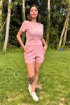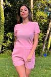 Dip Moda kadın pudra piliseli alt üst şortlu takım DP10047