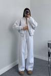 Kış ayları için ideal, şardonlu 3 iplik penye kumaştan üretilmiş hem rahat hem de şık bir görünüm sunar.; Düz tasarımıyla her türlü kombinle uyum sağlayan bu takım, günlük kullanıma uygun casual tarzıyla dikkat çeker.; Fermuar detaylarıyla modern bir dokunuş katılan sweatshirt ve pantolon, konforlu kullanım için tasarlanmıştır.; %70 pamuk ve %30 polyester karışımından oluşan materyali sayesinde dayanıklı ve nefes alabilen yapıya sahiptir.; Geniş paça pantolonu ve yarasa kol sweatshirtü ile rahat hareket etme özgürlüğünüz artar.; Yüksek bel pantolonu sayesinde gün boyu sabit kalırken, Bisiklet yaka sweatshirt, oversize kalıbı ve uzun kollu tasarımıyla rahatlık sağlar.; Rüzgara dayanıklı kumaş teknolojisiyle hava koşullarına karşı ekstra koruma sunar.; Fermuarlı kapama şekli kolay giyip çıkarmayı mümkün kılar ve tüm yaş gruplarına hitap eder.; Düz deseniyle sade ve zamansız bir stil oluşturmanızı sağlar.;