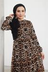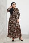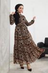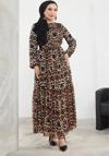 Ürün Adı: Dipmoda kadın kemerli leopar desenli tesettür şifon elbise SMS014