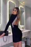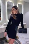 Sırt taş detaylı dekolte, Mini boy, Uzun kol, Bisiklet yaka.