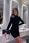 Ürün Adı: Dipmoda kadın sırtı ve omuzu taş işlemeli tasarım mini elbise NBEMP2563