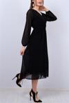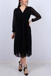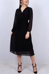 Ürün Adı: Dipmoda kadın siyah kuşaklı kruvaze midi şifon elbise NB2023