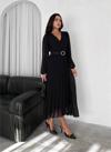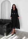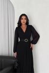 kadın siyah piliseli kemerli şifon elbise DPK3028