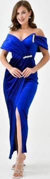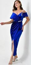 Ürün Adı: Dipmoda kadın taş ve yırtmaç detaylı kadife abiye elbise NBS9361