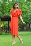Ürün Adı: Dipmoda kadın yaka ve kolları fırfırlı bağlama detaylı ayrobin elbise NB10050