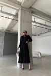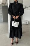 Melsay Butik Fularlı Siyah Taş Desen Uzun Kollu Büyük Beden Kadın Elbise